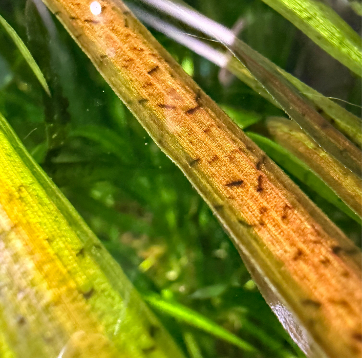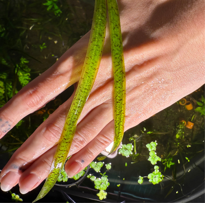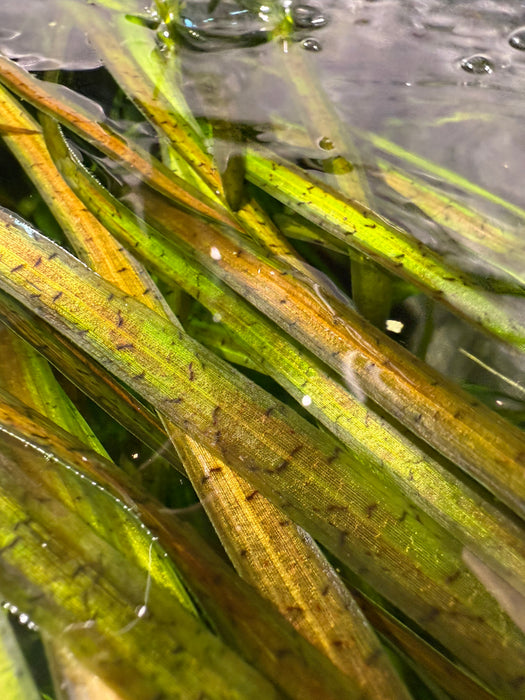 Vallisneria spiralis v. tiger is a fantastic, easy and fast growing, background aquarium plant. The blades of this plant can easily grow over 48” in length. They have gorgeous tiger like striping, and under stronger light can turn a nice shade of red.